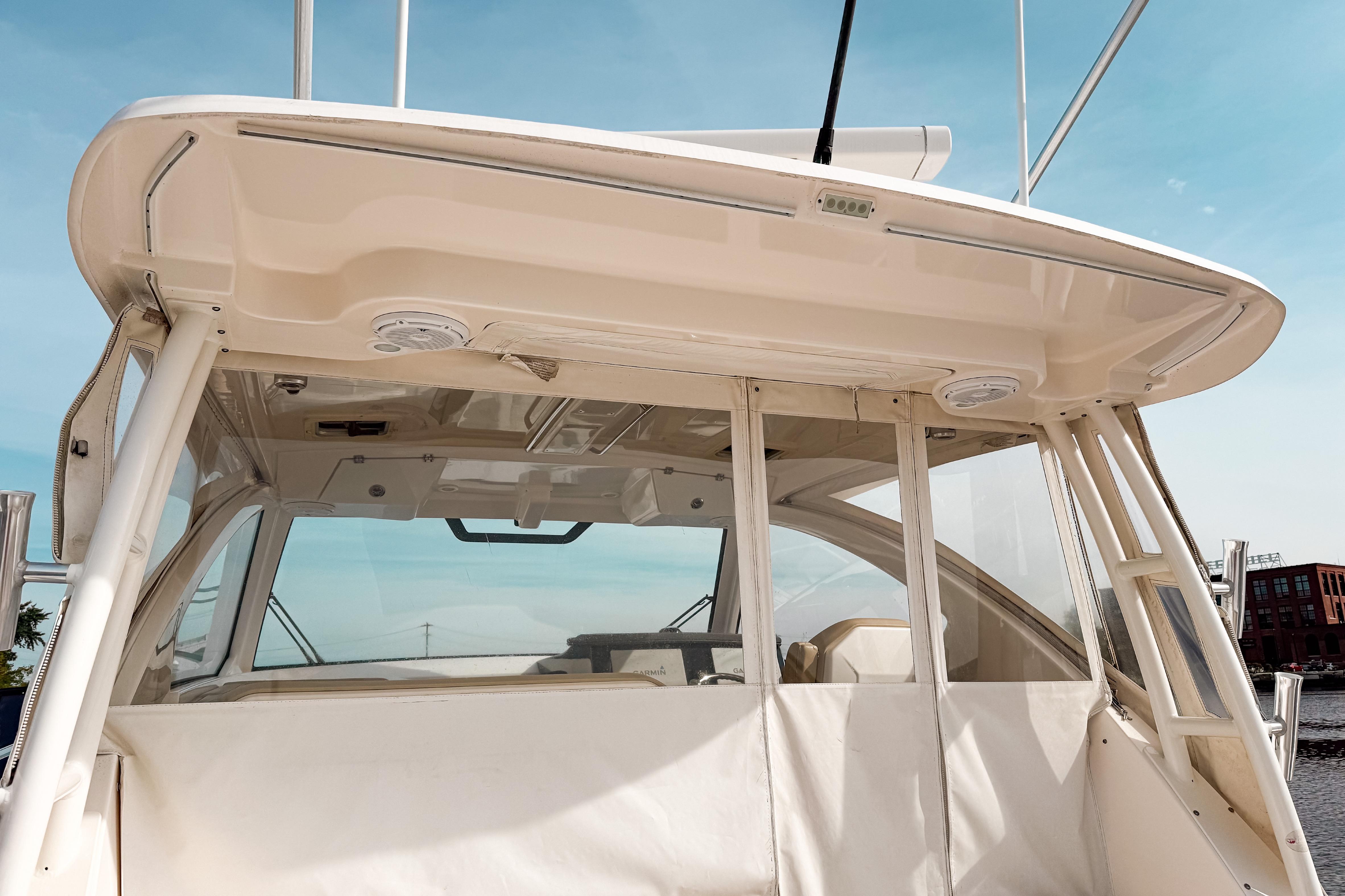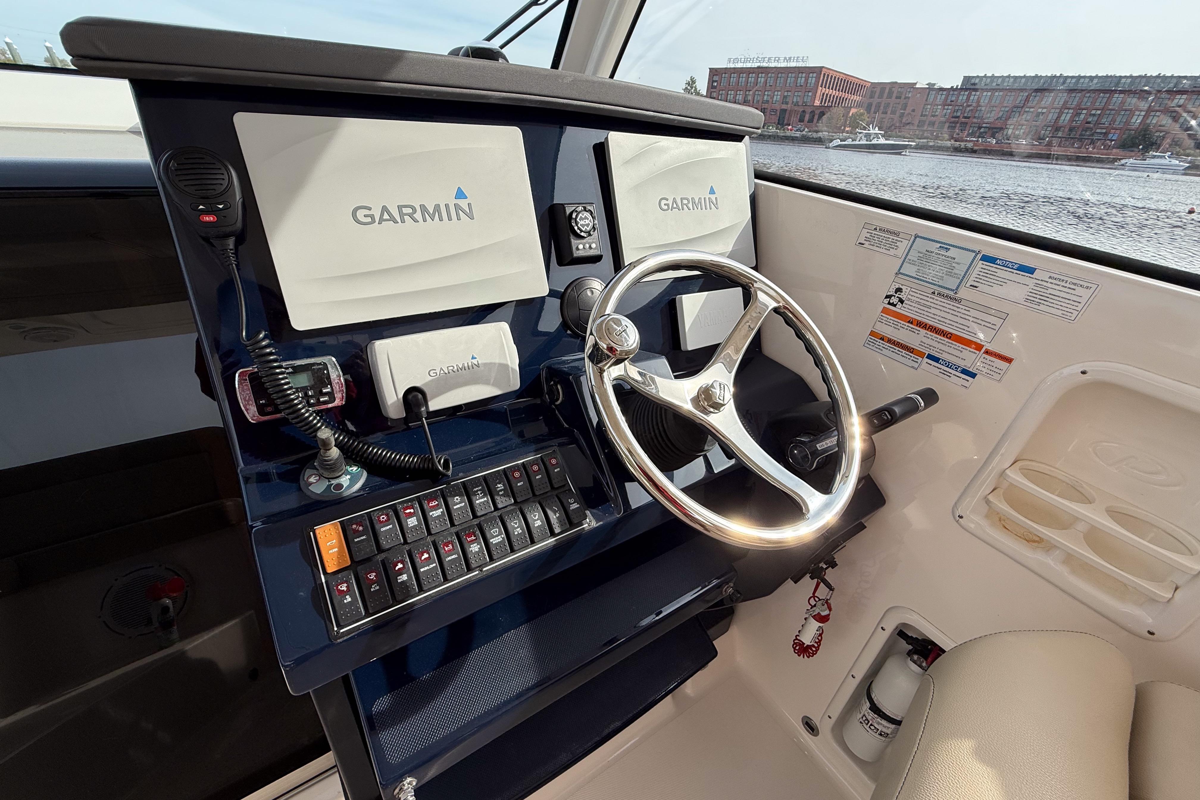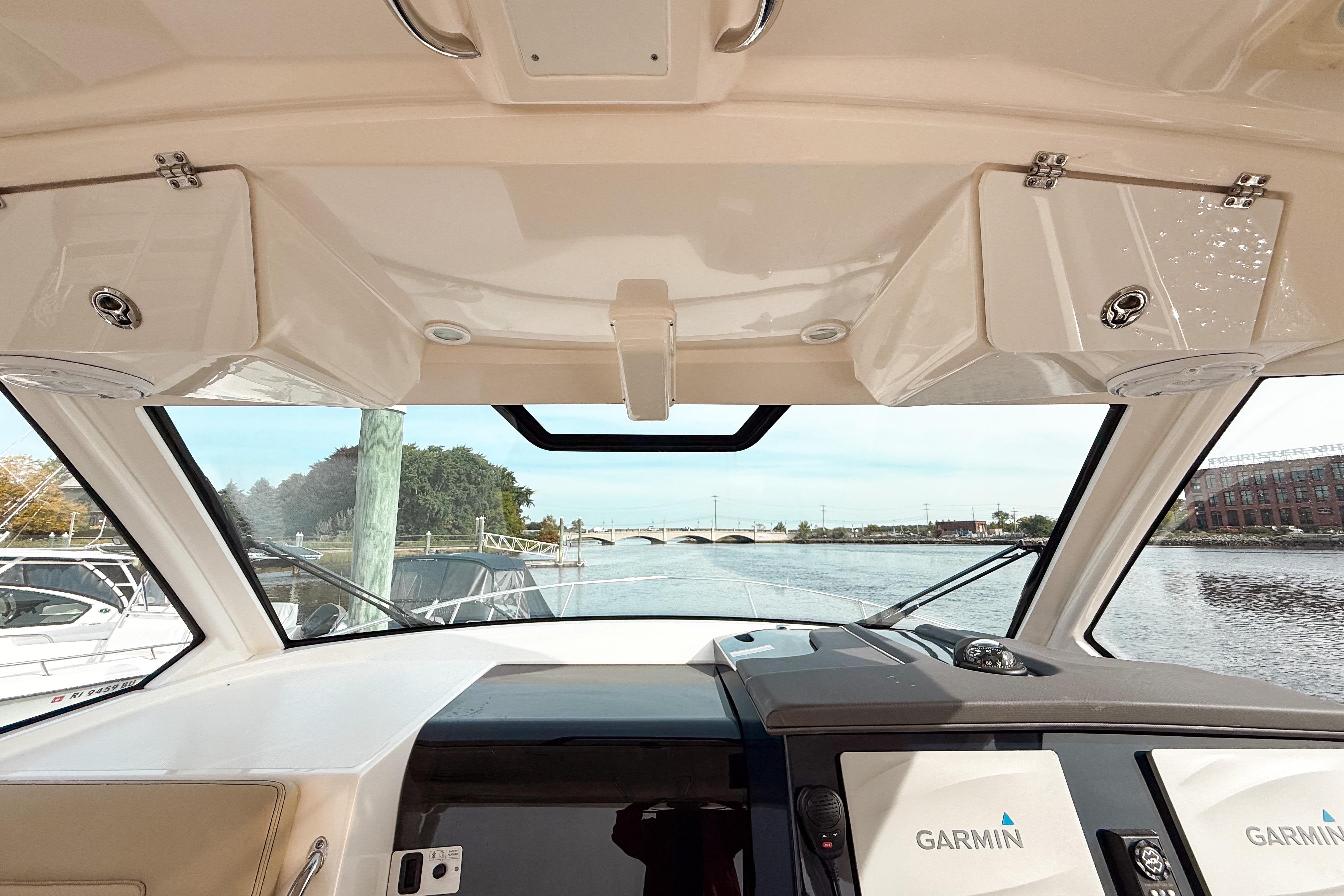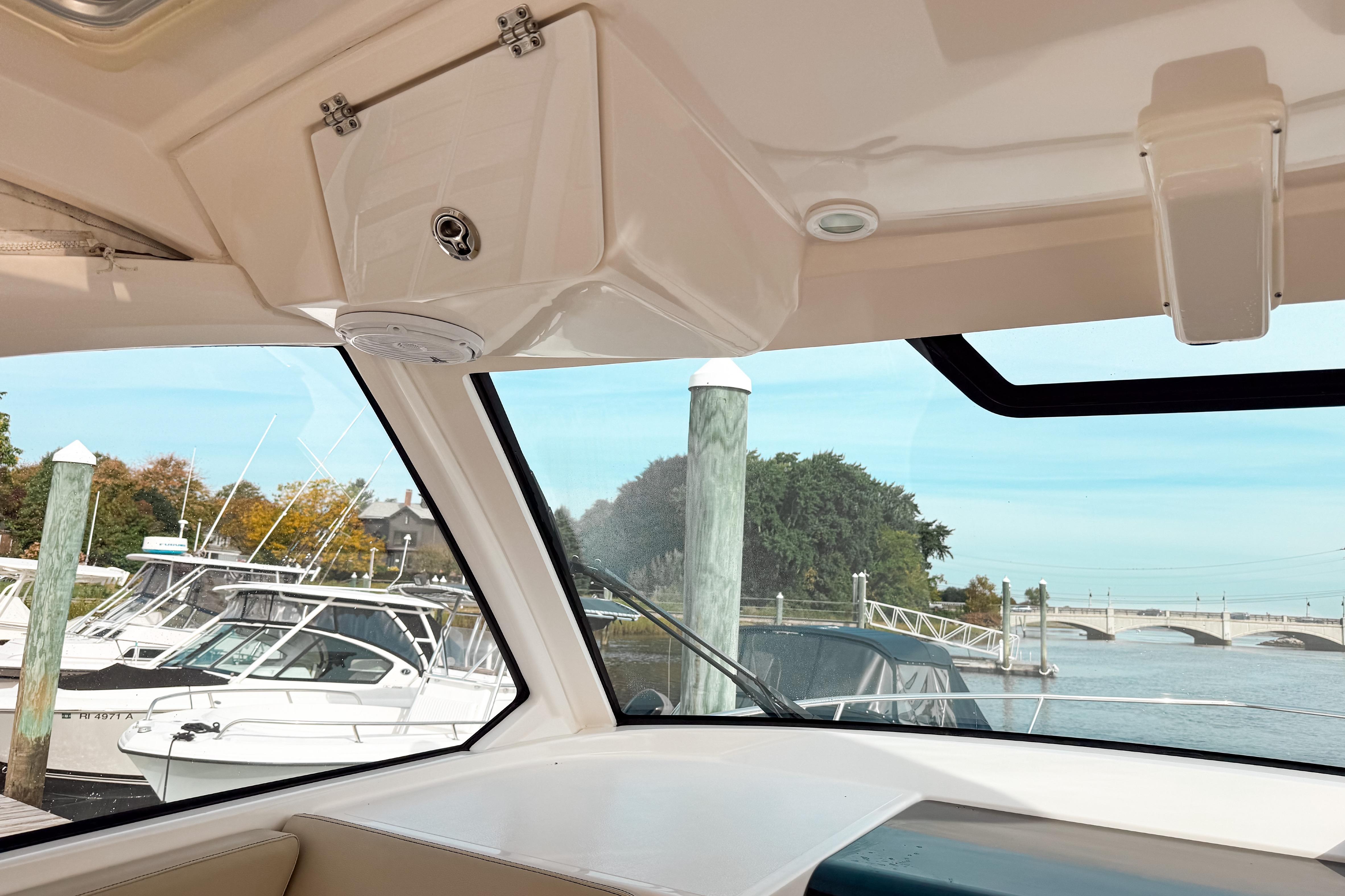 • Pursuit Cockpit Entertainment System: 12V Bluetooth® Compatible Stereo System, Premium Speakers (7 Total, 4 in Hardtop, 2 Interior & Subwoofer), Amplifier and Remote at Helm