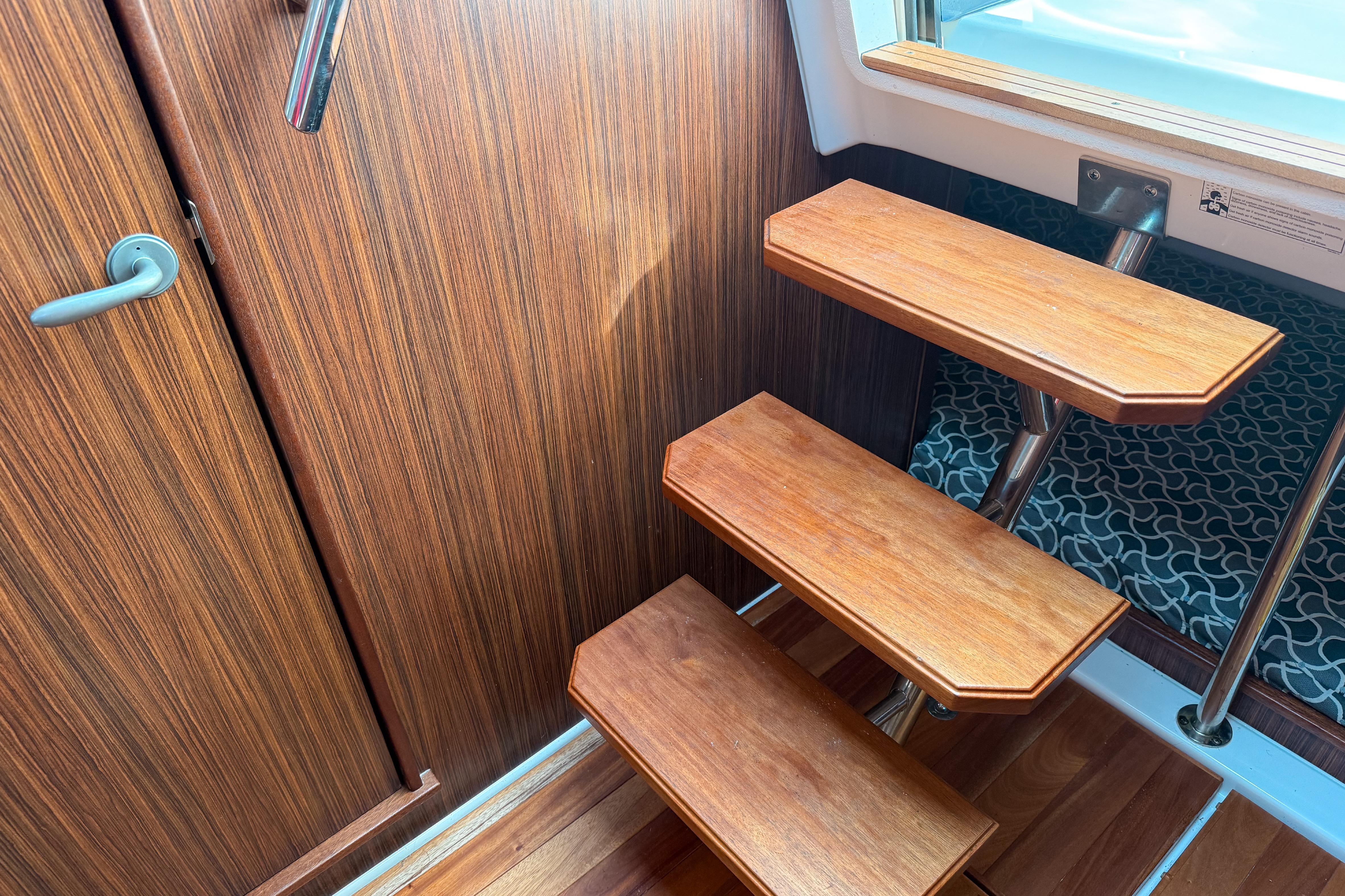• Aft Full Size Berth with Recessed, Wood Framed 6” Inner Spring Mattress