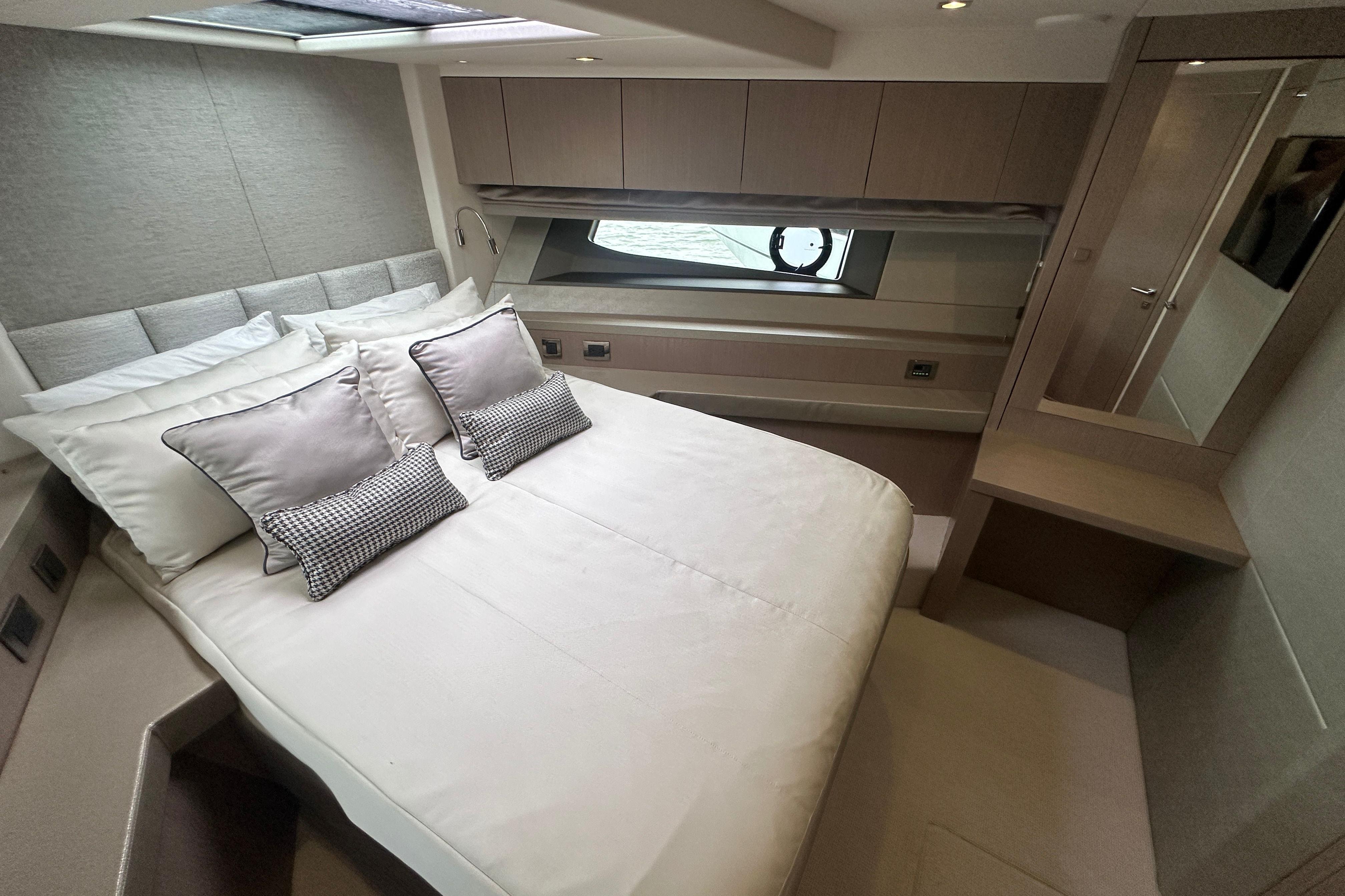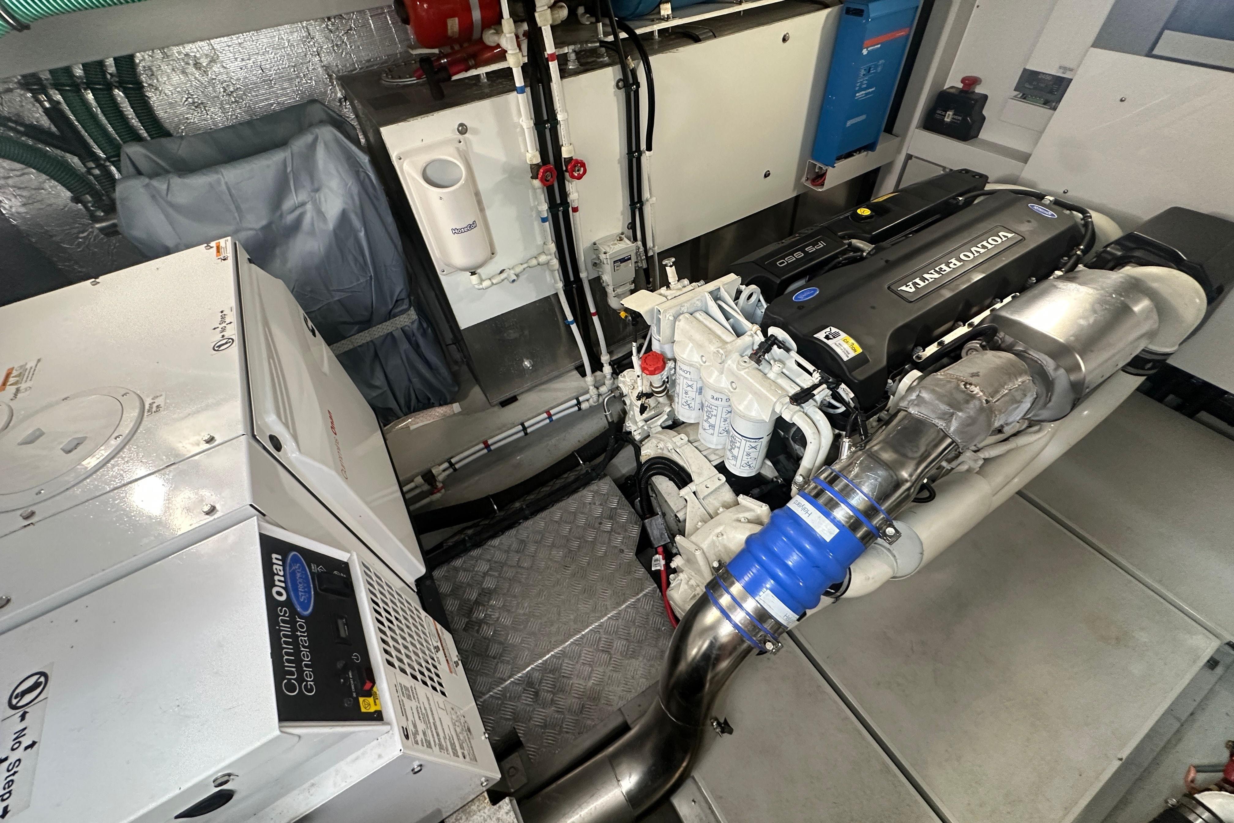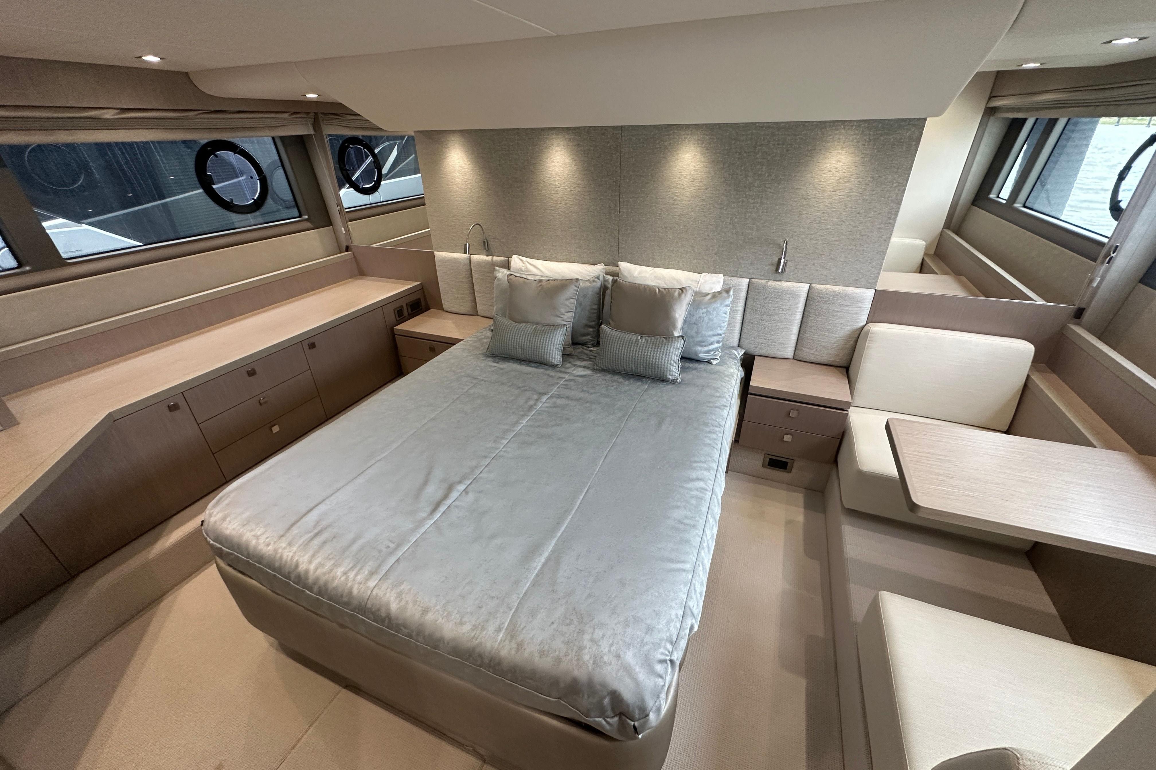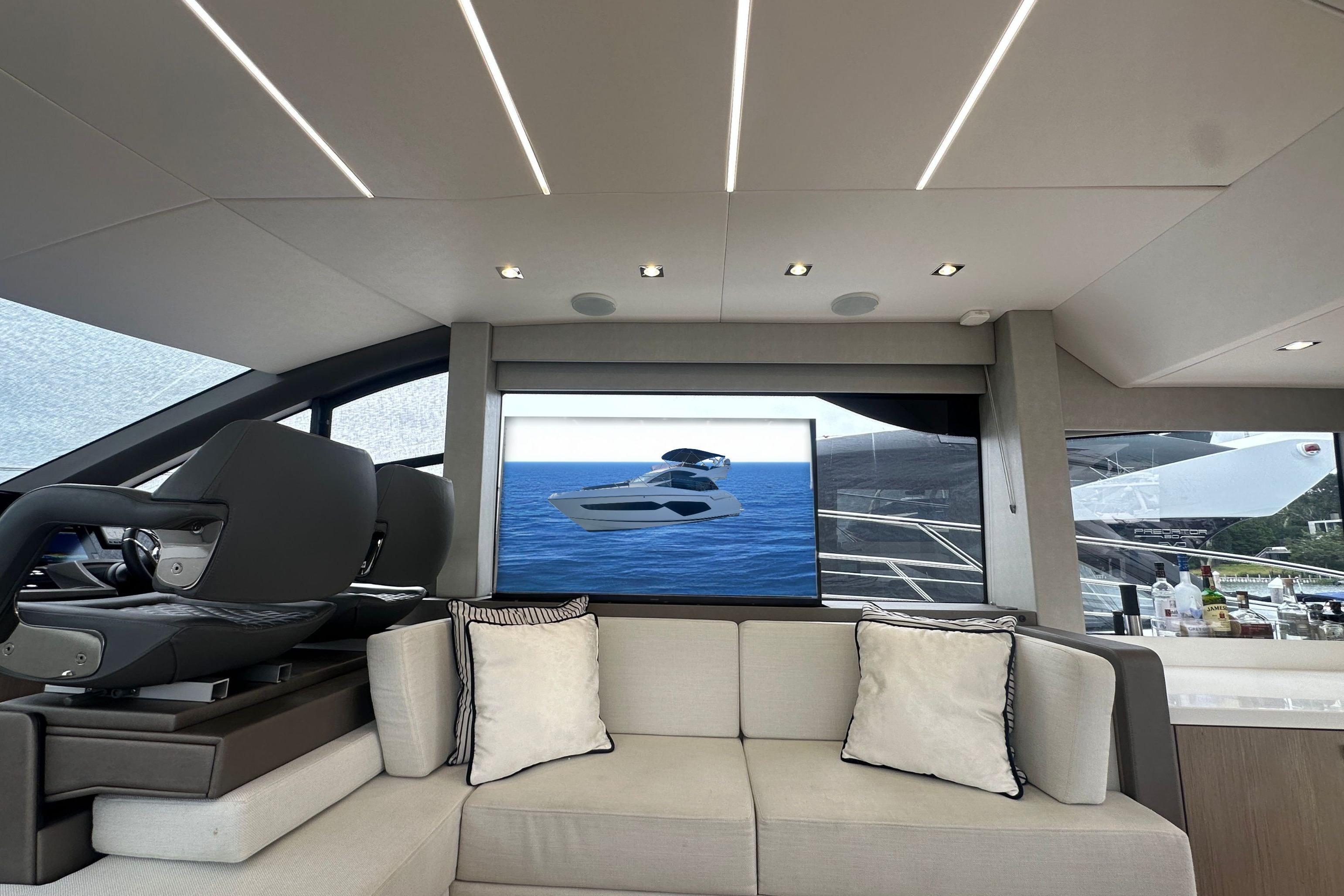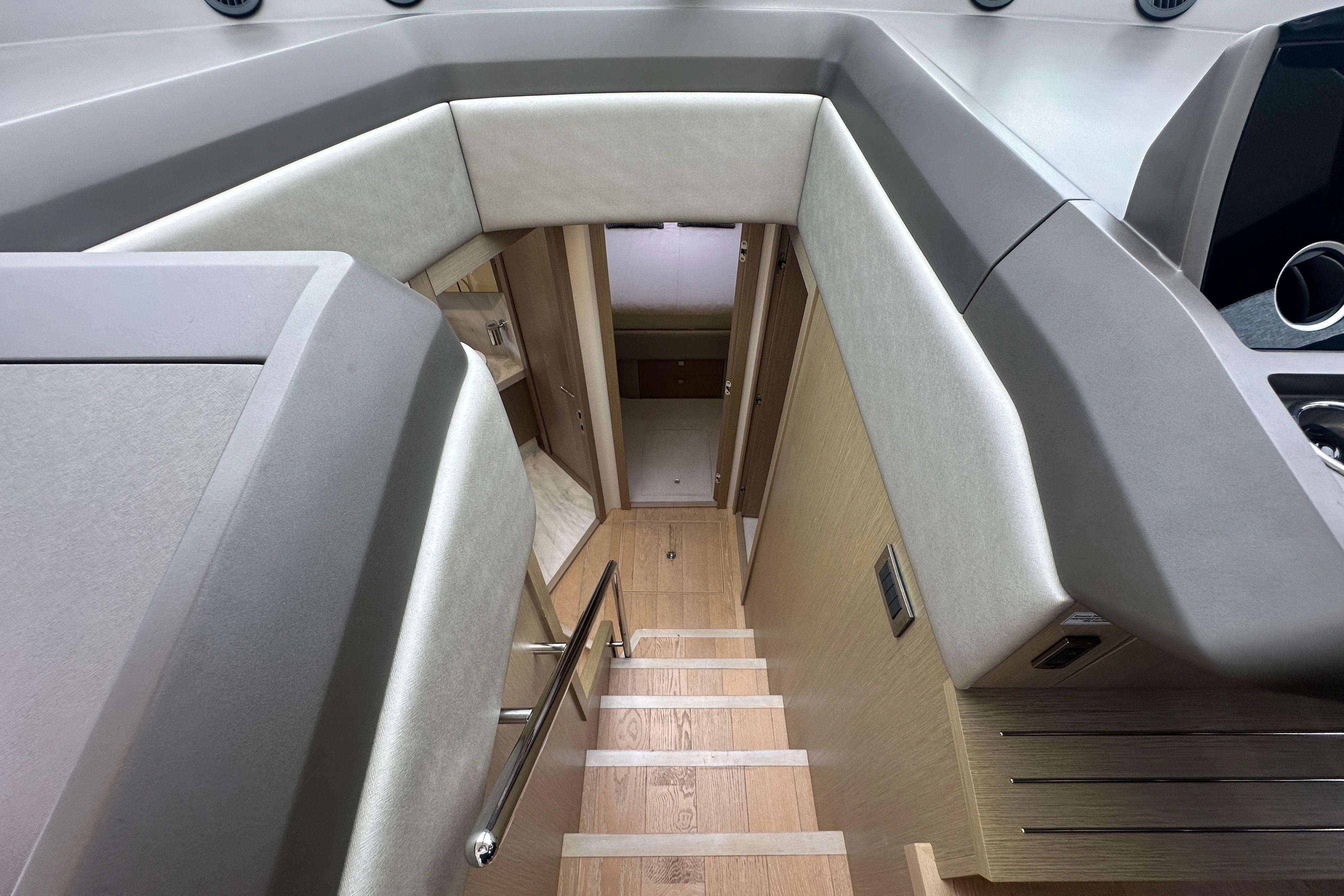 Powered by twin Volvo Penta IPS 950 engines (2 x 725PS), she delivers a smooth, efficient, and dynamic cruising experience. The Volvo Penta IPS DPS (Dynamic Positioning System) with Joystick Control, and Glass Cockpit system at both the main helm and flybridge provide cutting-edge navigation and control. Electronics include a Garmin GMR 624 xHD2 Open Array Radar and dual Garmin GMI 20 speed/depth instruments, while the upgraded VHF system with DSC function ensures reliable communication offshore.