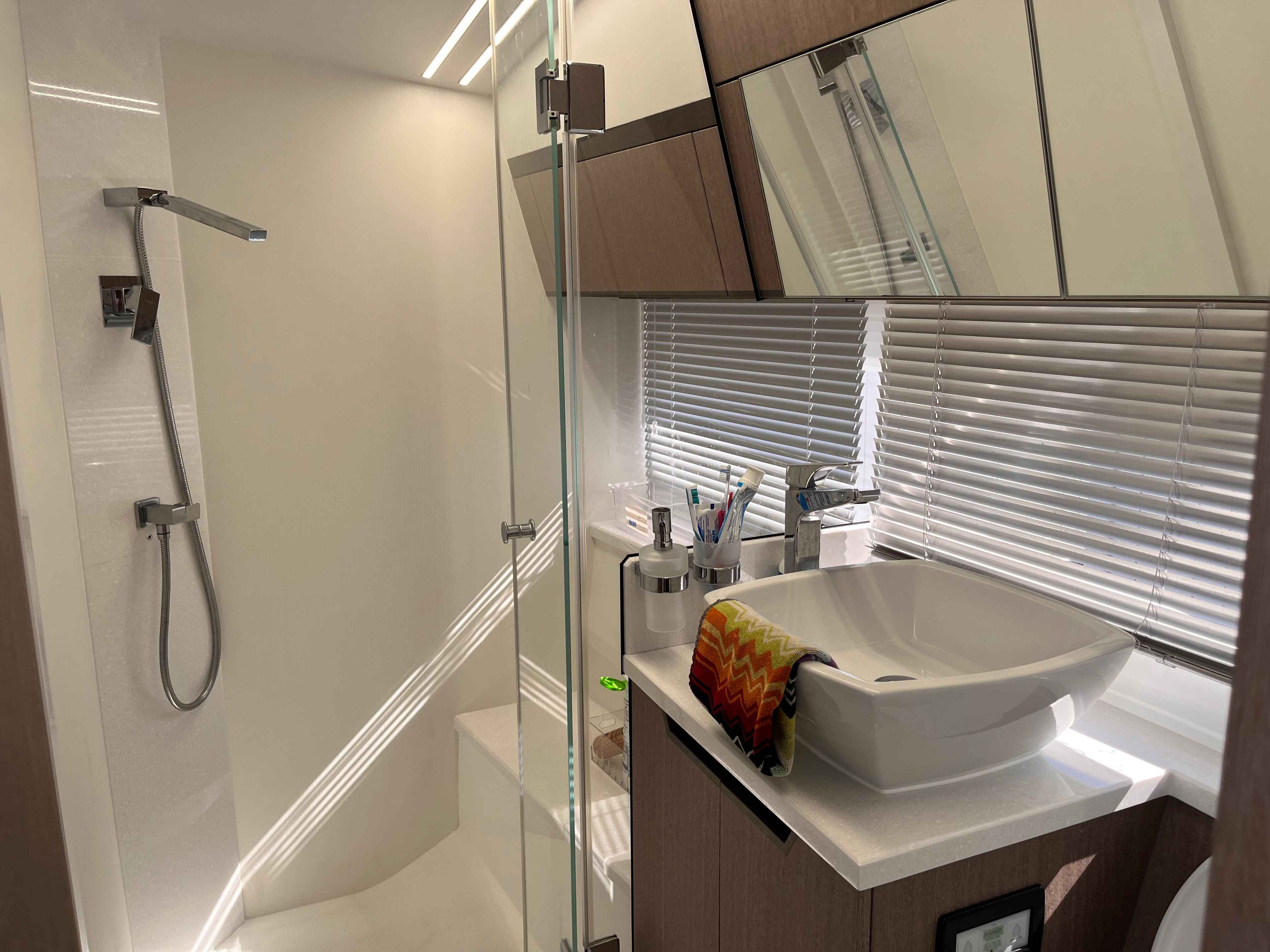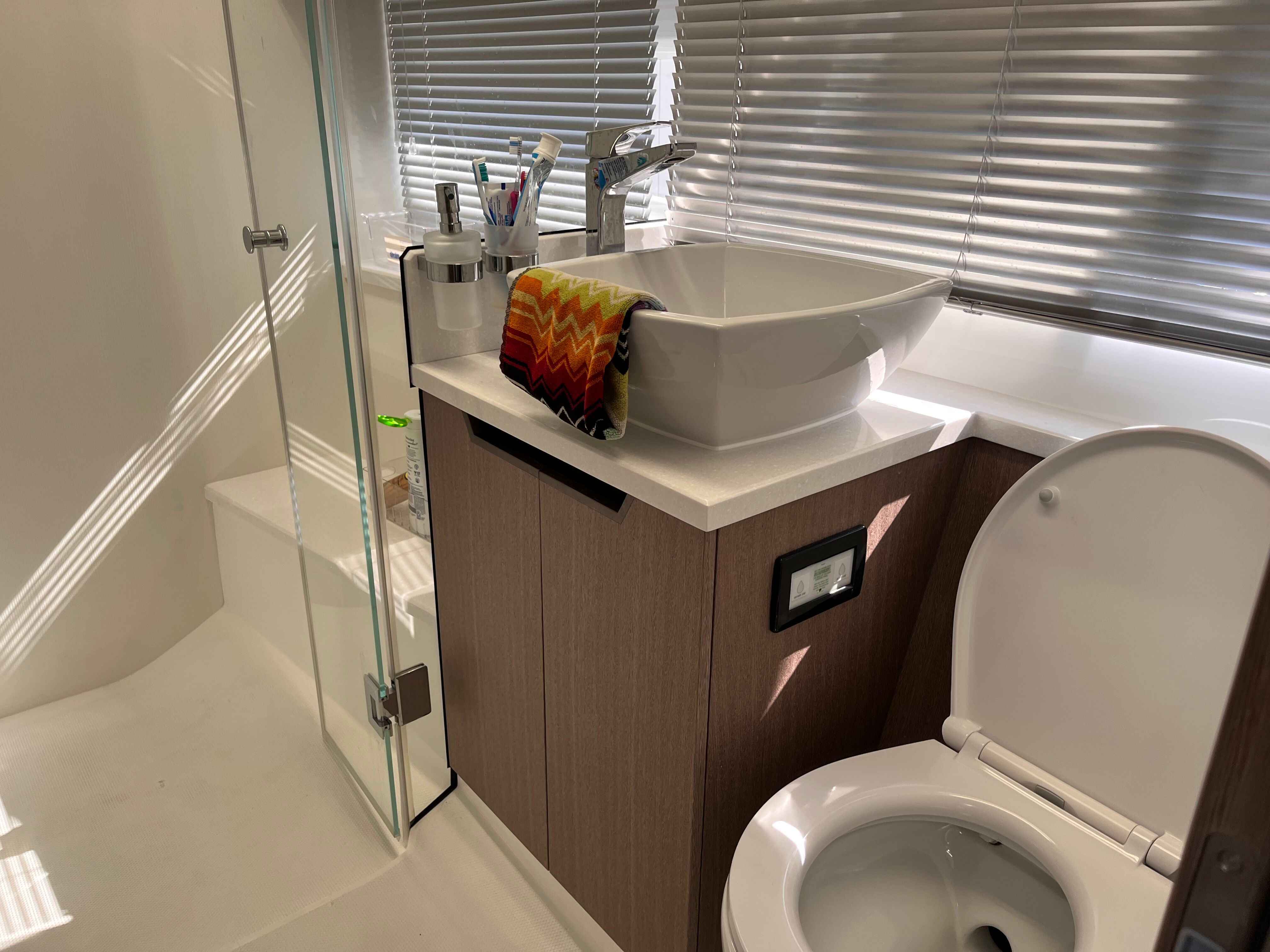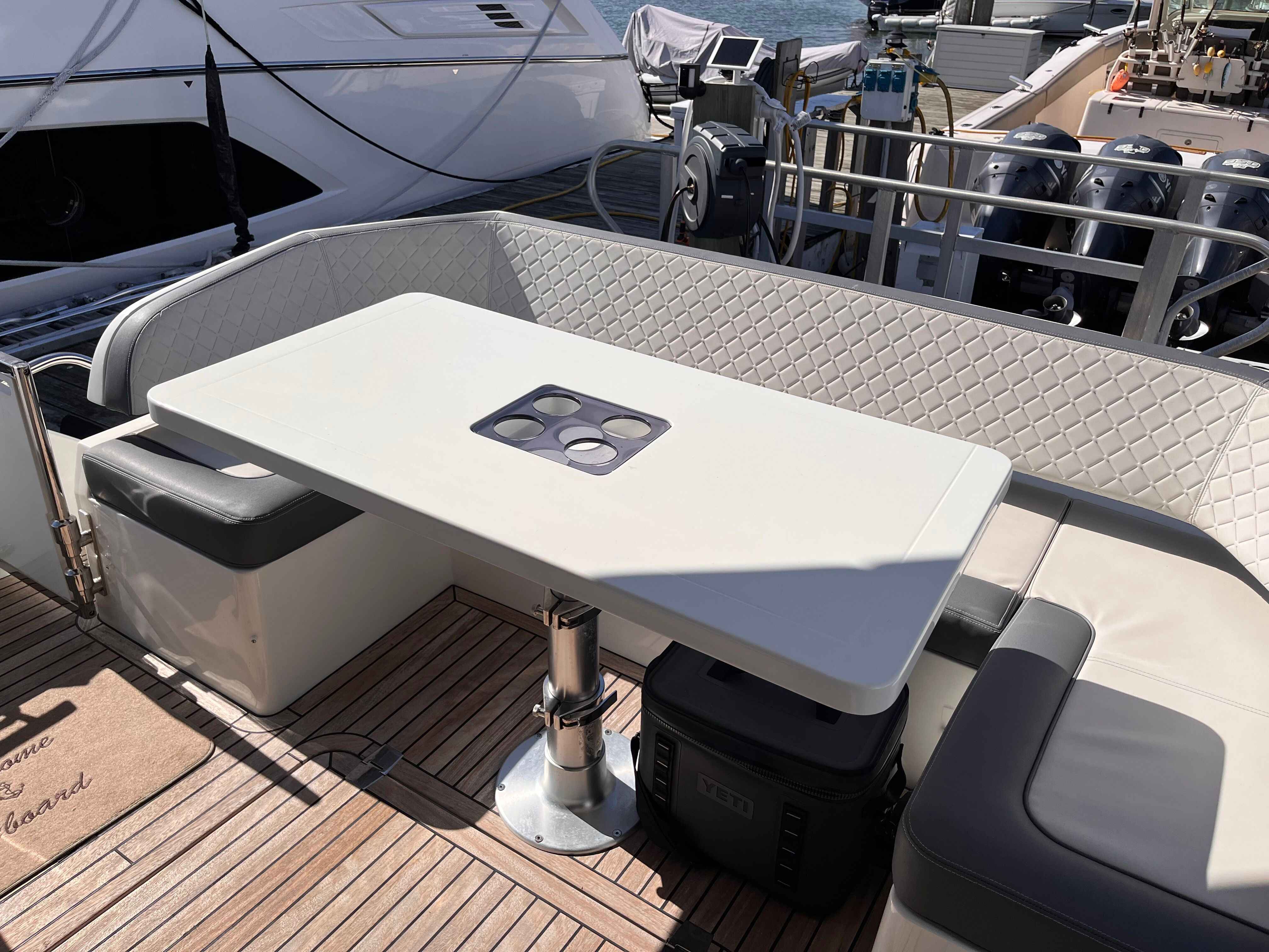Powered by Twin Volvo Penta IPS 500 engines (380HP each – 760HP total) with only 170 hours, this yacht delivers smooth, efficient performance and exceptional maneuverability with Joystick Docking Control. Whether cruising offshore or navigating a marina, “Gforce” handles with confidence and precision.