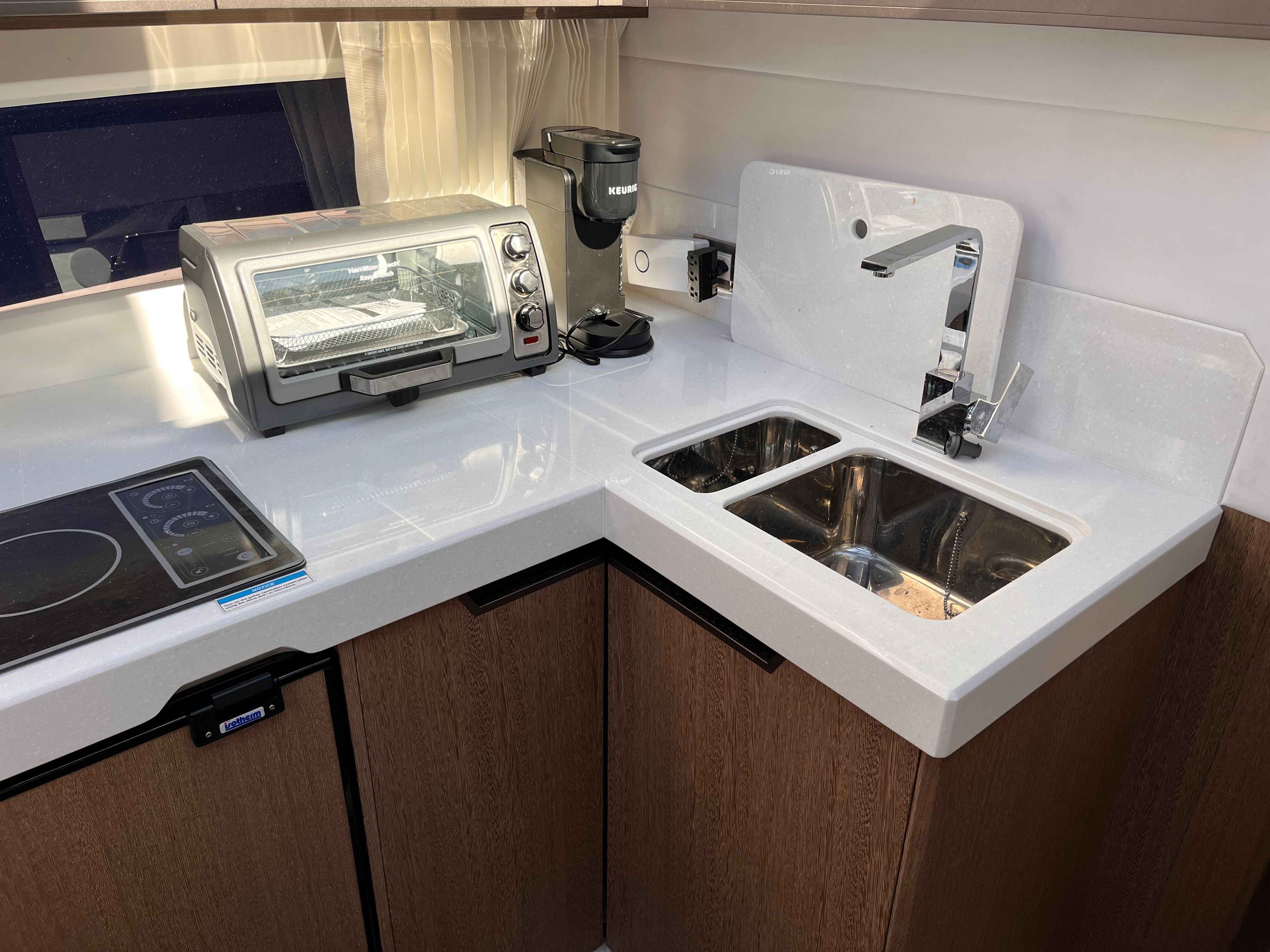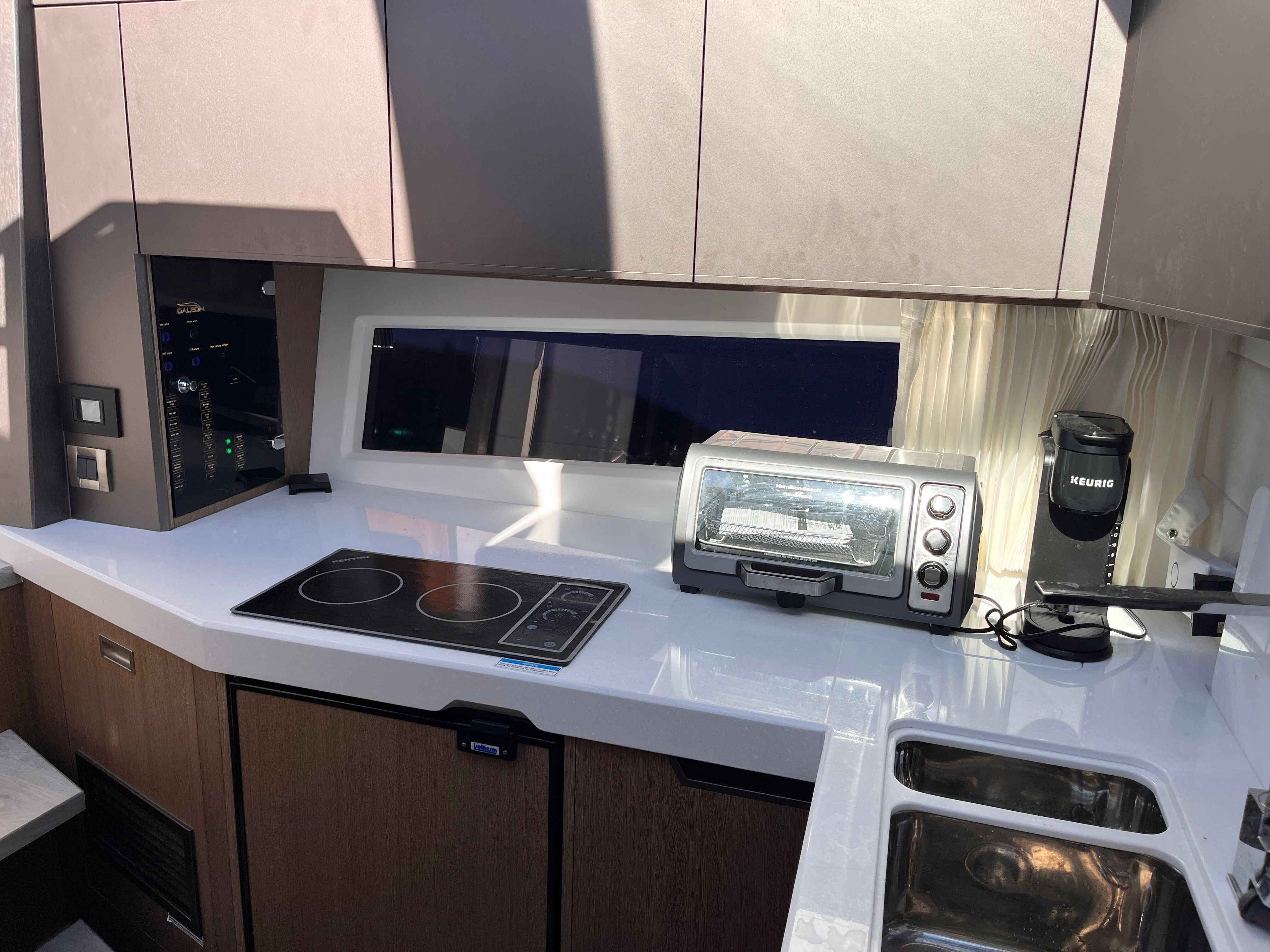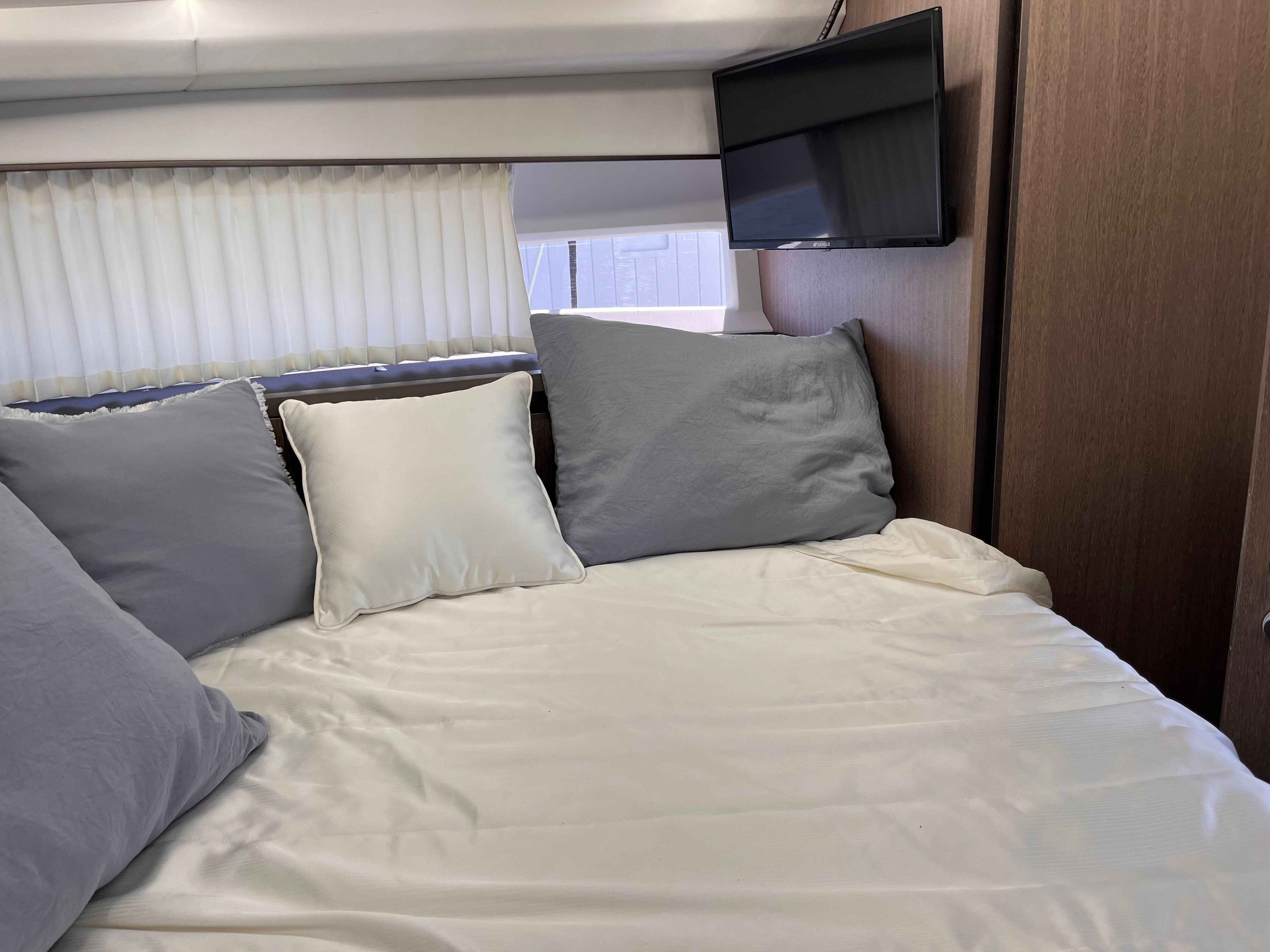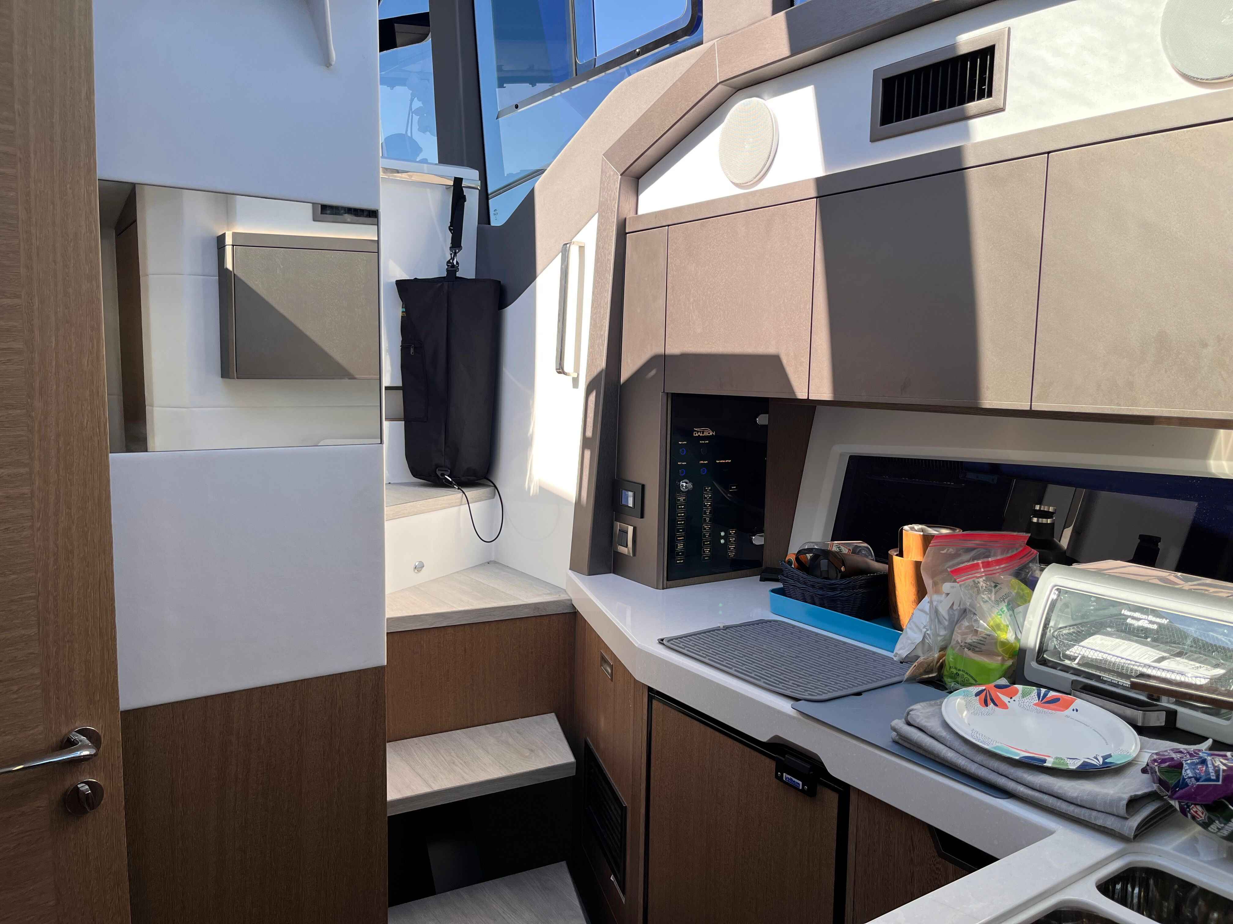 Below deck, you’ll find a beautifully appointed galley, a spacious master cabin, and a comfortable guest cabin — all crafted with Galeon’s signature attention to detail, luxury materials, and modern European styling.